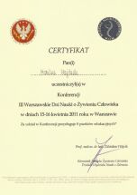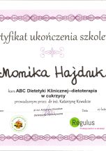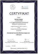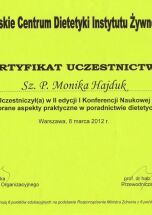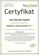 Certyfikat „Dietcoaching” I i II stopień