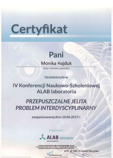 Przepuszczalne jelita - problem interdyscyplinarny, IV Konferencja Naukowo-Szkoleniowa ALAB Laboratoria, 10.06.2017